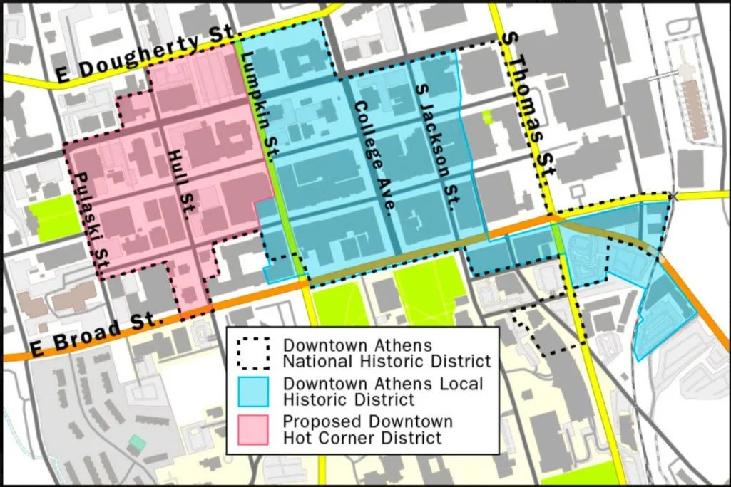 Thankfully, grassroots advocacy efforts persevered. A series of actions - including the area being named to the Athens Places in Peril list, a downtown demolition moratorium, community petitions, outreach efforts by Historic Athens members, and passionate support by local property owners and elected officials - led to a new West Downtown Historic District in 2021.